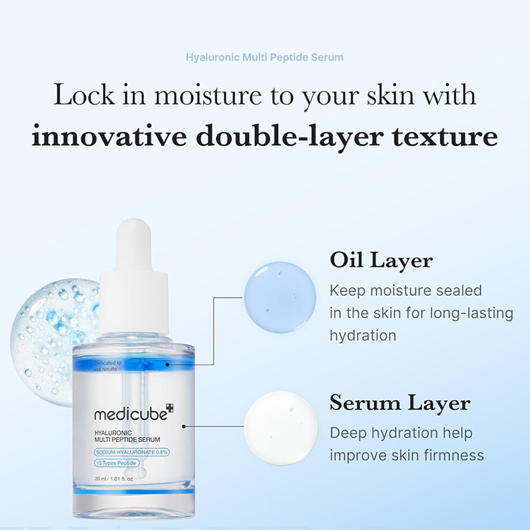 سرم هیالورونیک اسید و مولتی پپتاید مدی کیوب یک محصول پیشرفته و تخصصی برای مراقبت از پوست است که با ترکیبی قدرتمند از هیالورونیک اسید و پپتایدهای فعال، رطوبترسانی عمیق، تقویت و بازسازی پوست را همزمان فراهم میکند. این سرم با بافت سبک و جذب سریع خود، بدون ایجاد حس چربی یا سنگینی، پوست را تغذیه میکند و باعث شادابی و طراوت آن میشود.